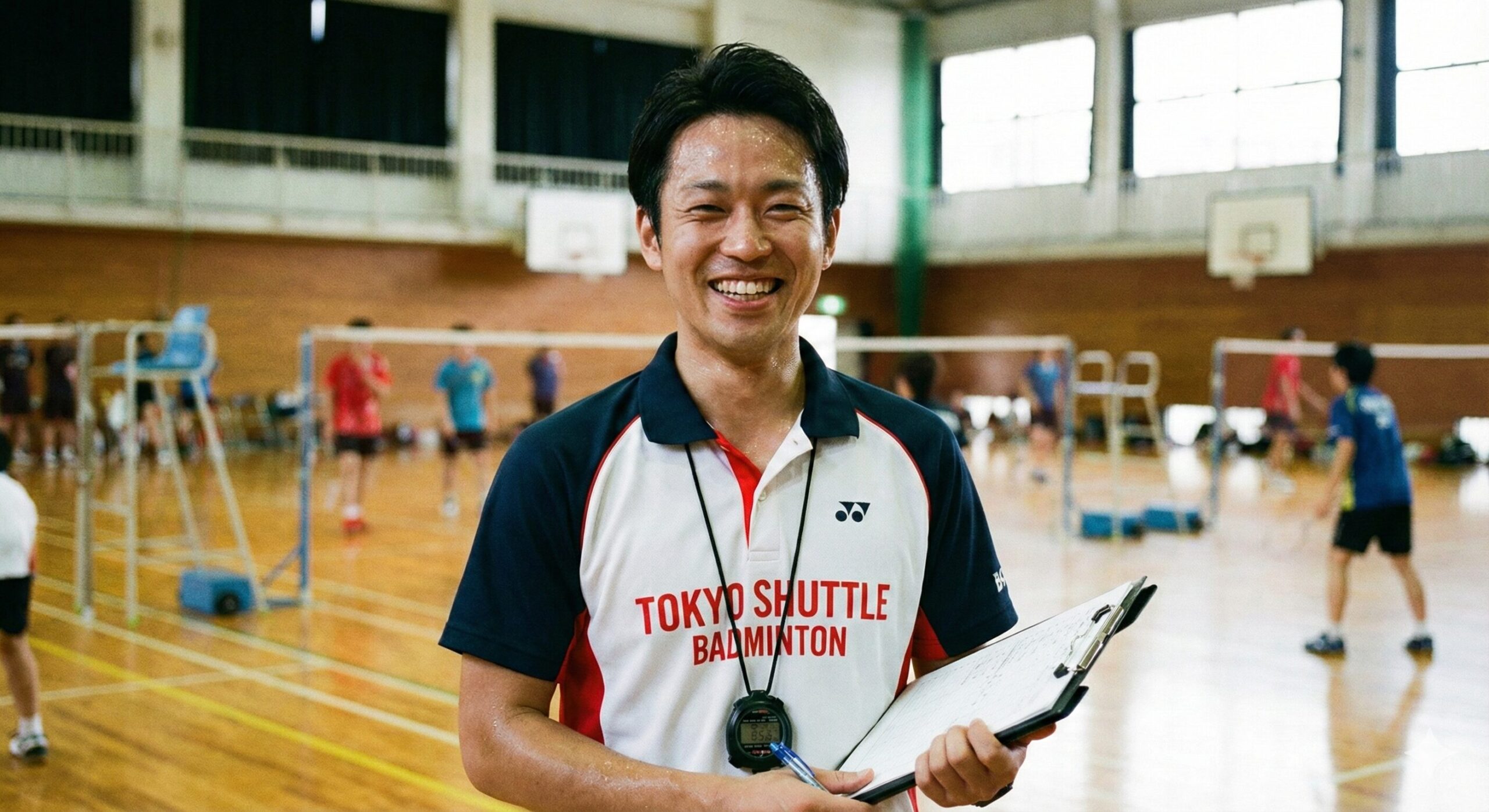 以前はホワイトボードの前から動けませんでしたが、Courtone導入後はスマホ片手にどこでも指示が出せるように。参加者からも「待ち時間がわかって良い」と好評です。