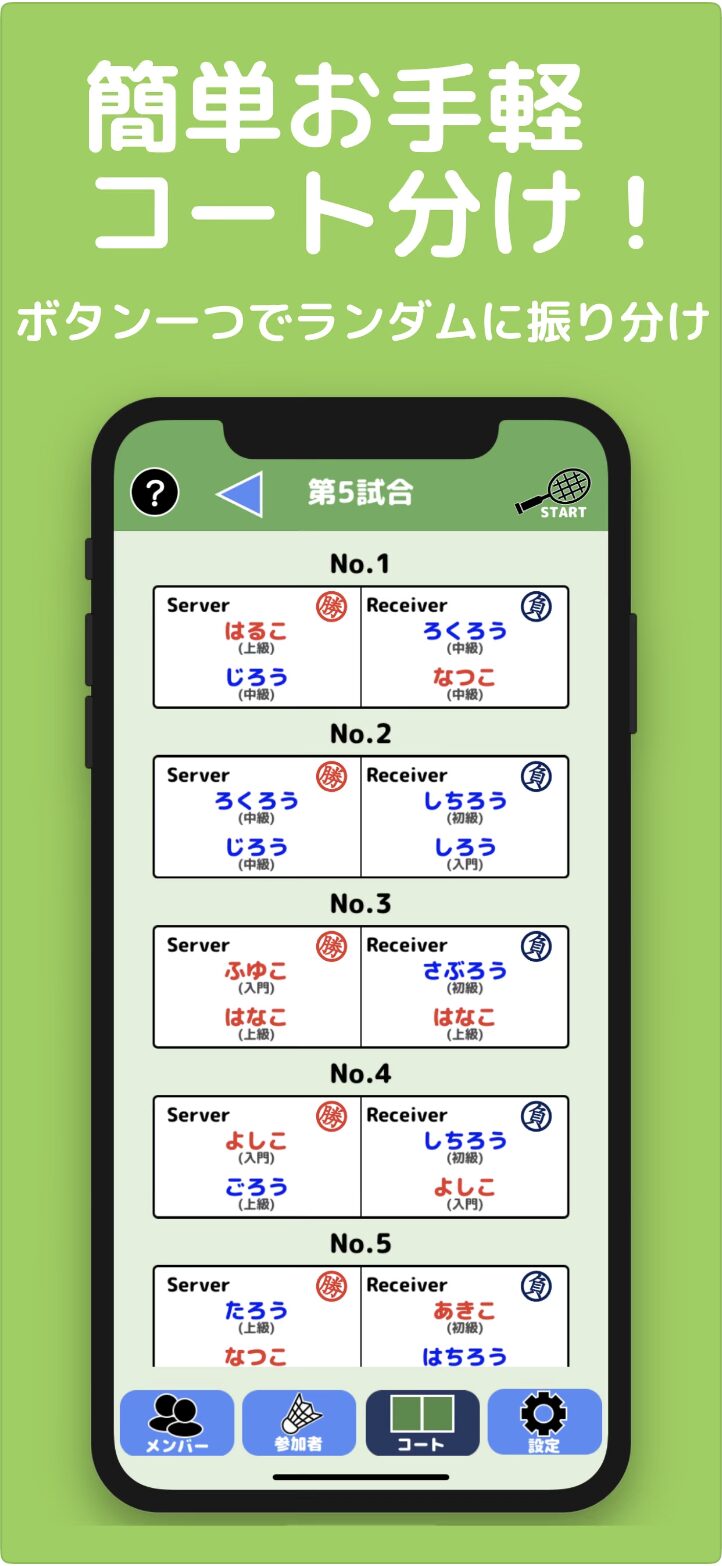 | コート振り分けアプリ | ★☆☆☆☆ | 名前の事前入力が必要 |