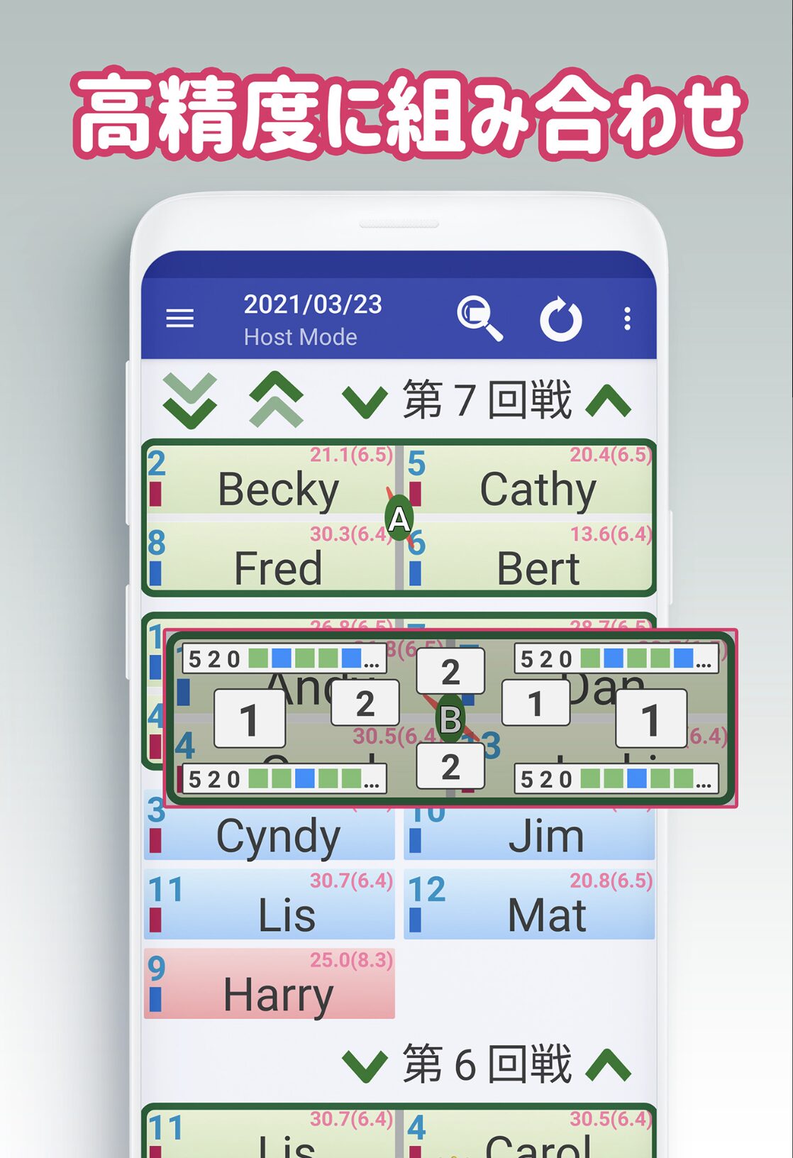 | DoublesMatchmaker | ★★★☆☆ | 数字ベースでも可能だが、多機能がゆえに操作手順の学習は必要 |