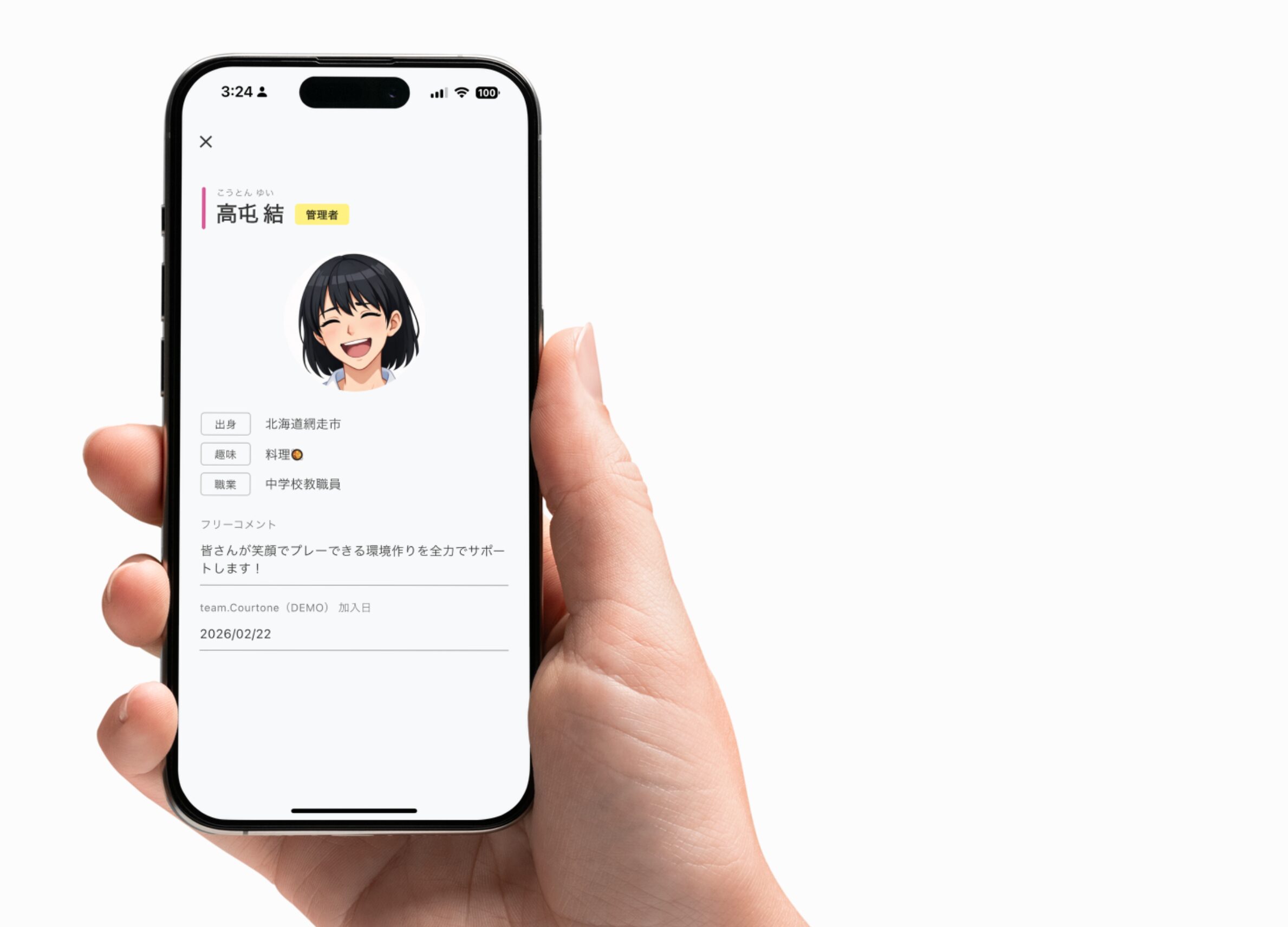 また新人さんが、参加前にCourtoneをインストールし、事前にプロフィールを記入してくることで、当日はその内容が活動メンバーの中で共有されます。